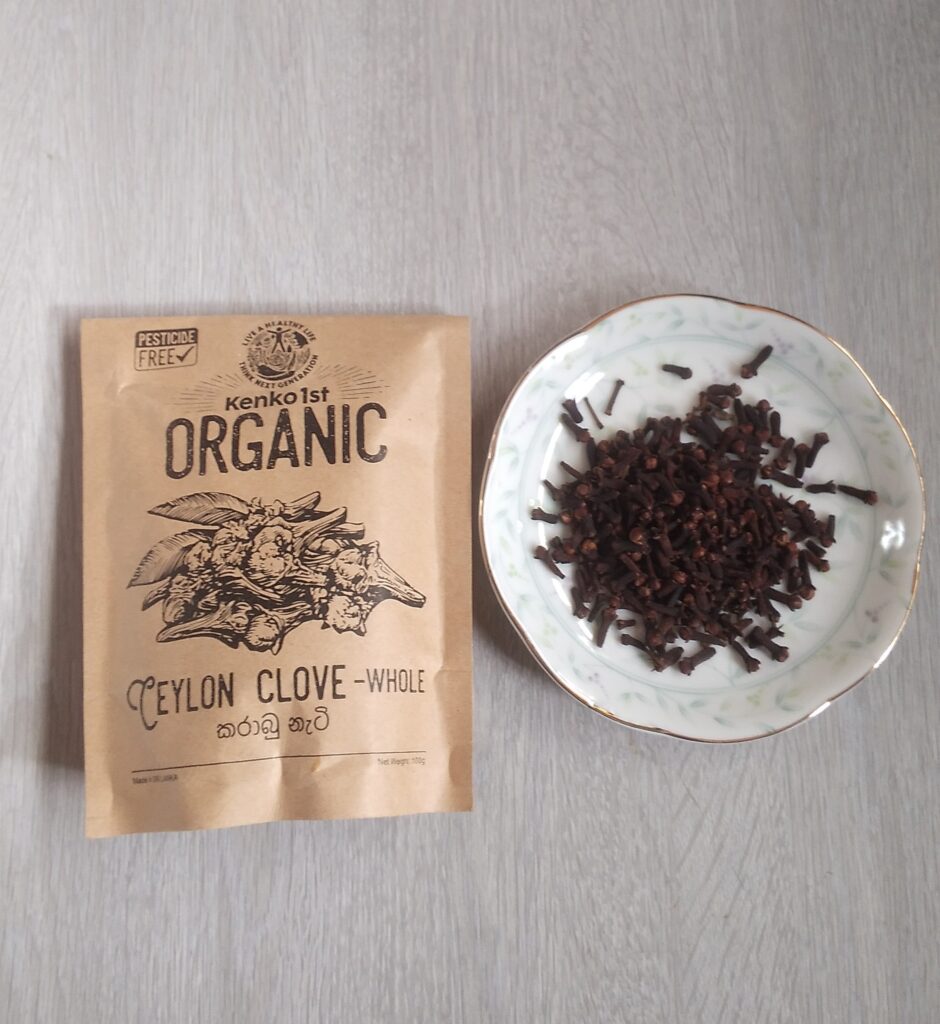 グローブと紅茶と黒砂糖 グローブ(丁子ーちょうじ)は甘い香りで胃を刺激、スパイシーな香りで、肉料理、カレー、ドリンクなどに使われています。 また、冷え、生理不順、食欲不振など効果があります。
